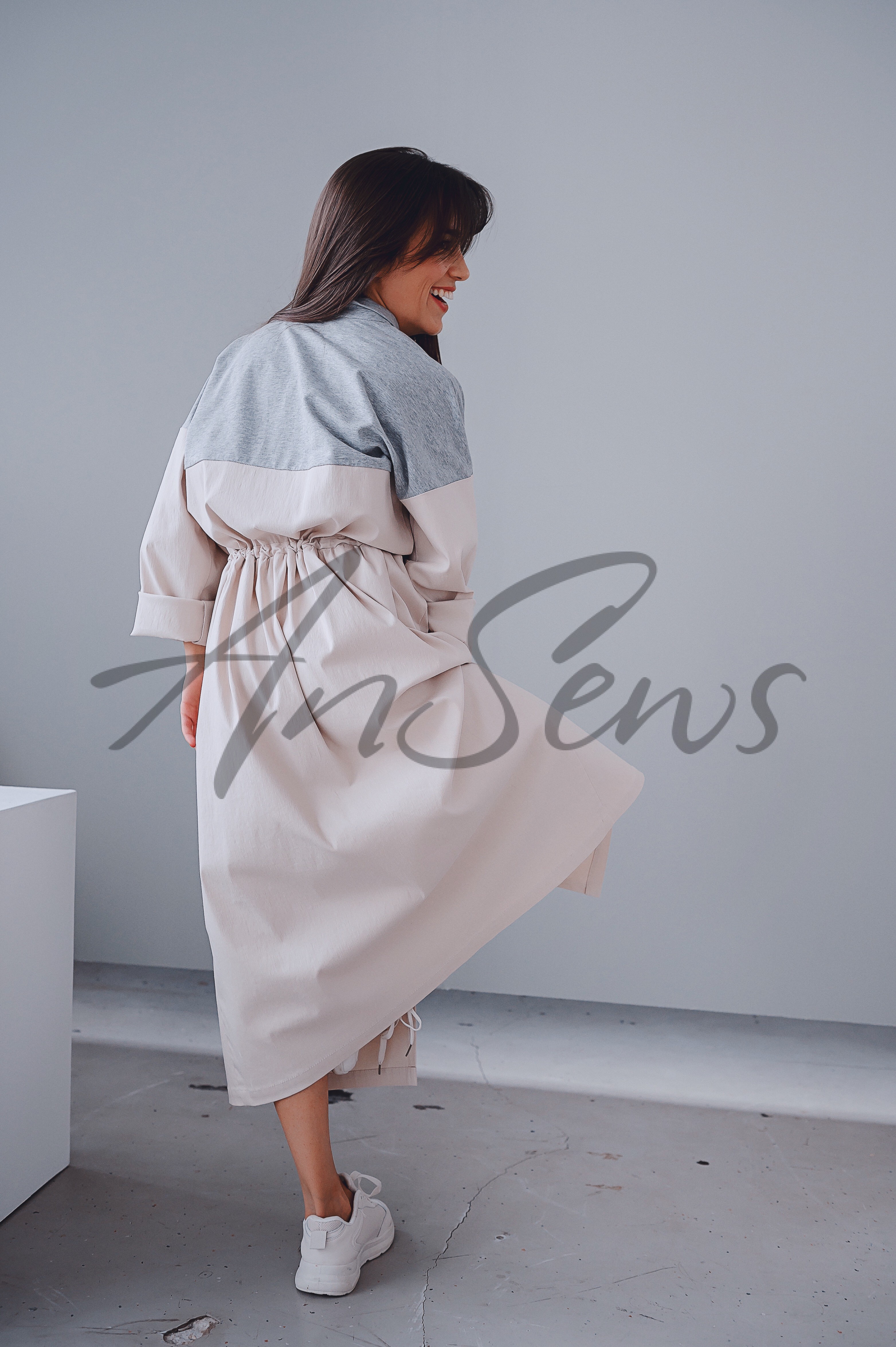 Расход ткани составит 2,3 м при ширине 140 см для роста 170 см.