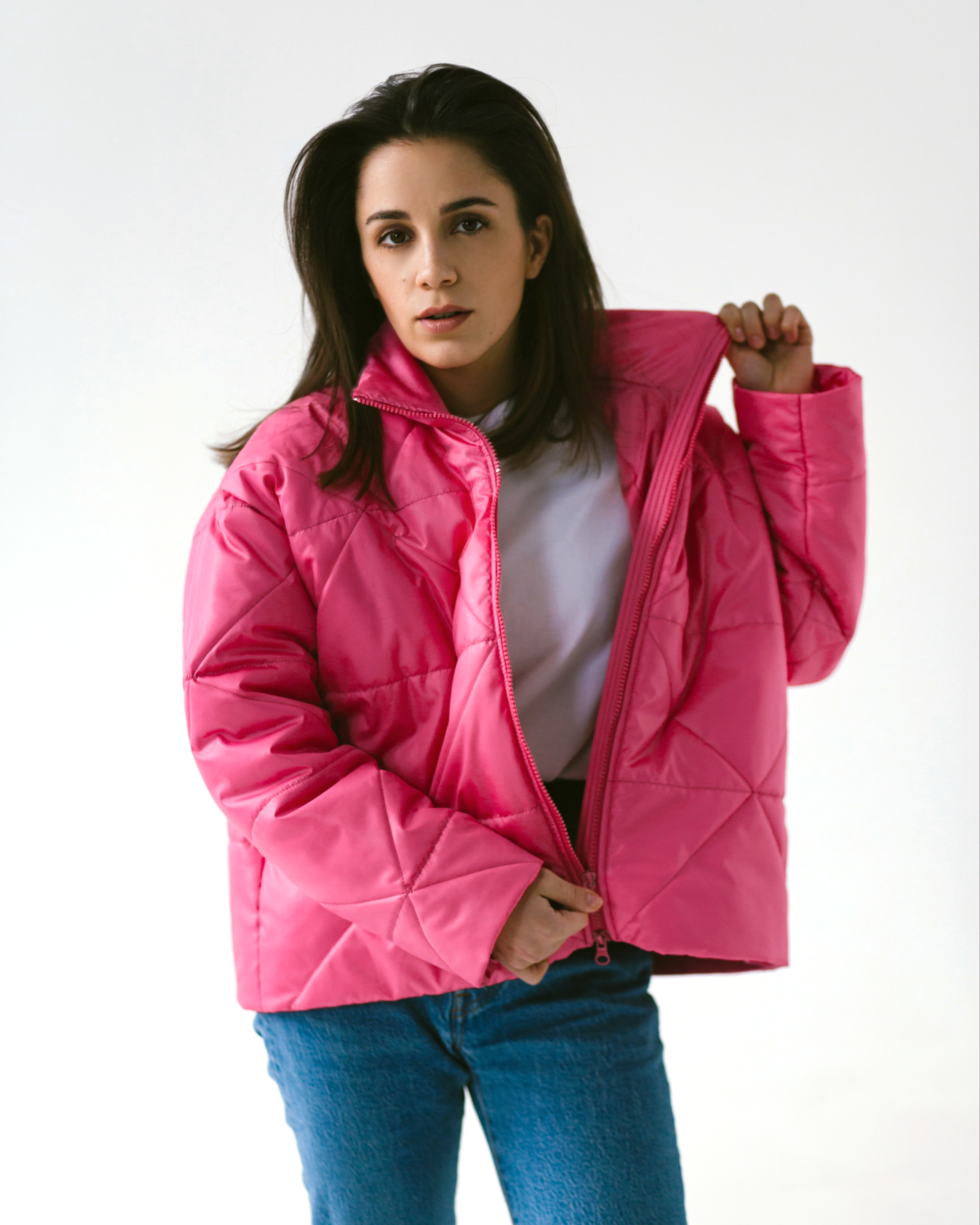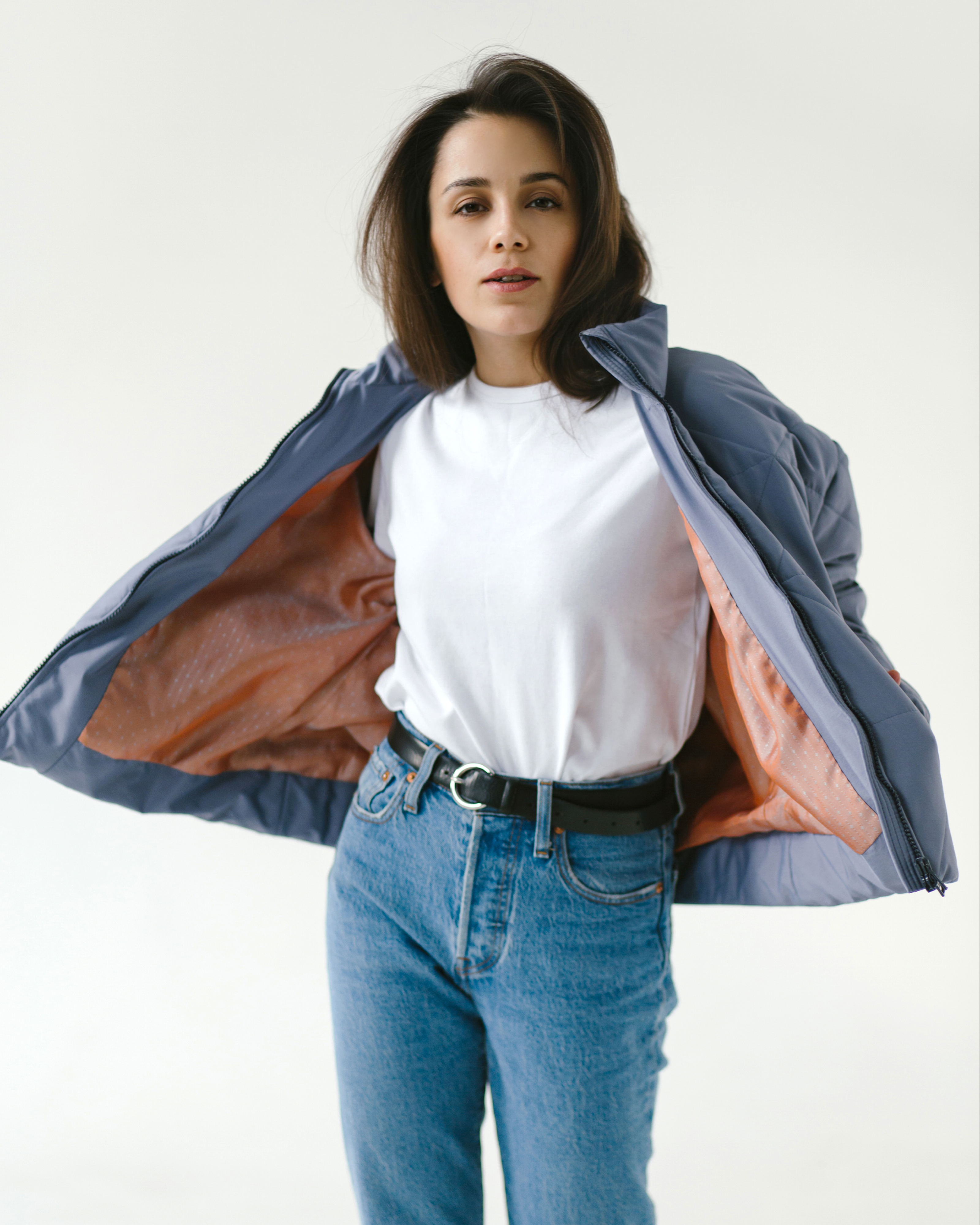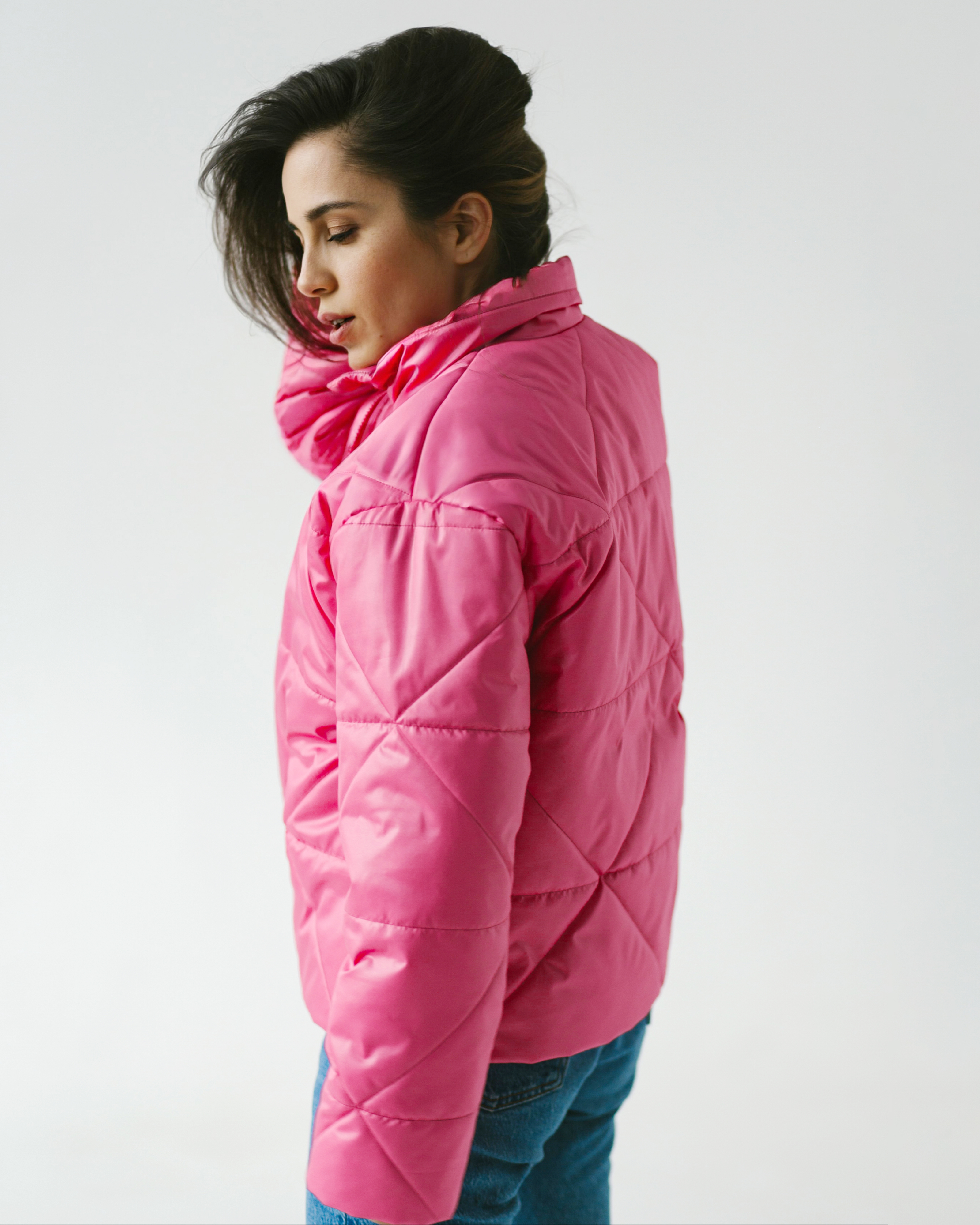 - Можно взять готовую стежку – основная ткань плюс утеплитель. Это ускорит процесс пошива куртки.