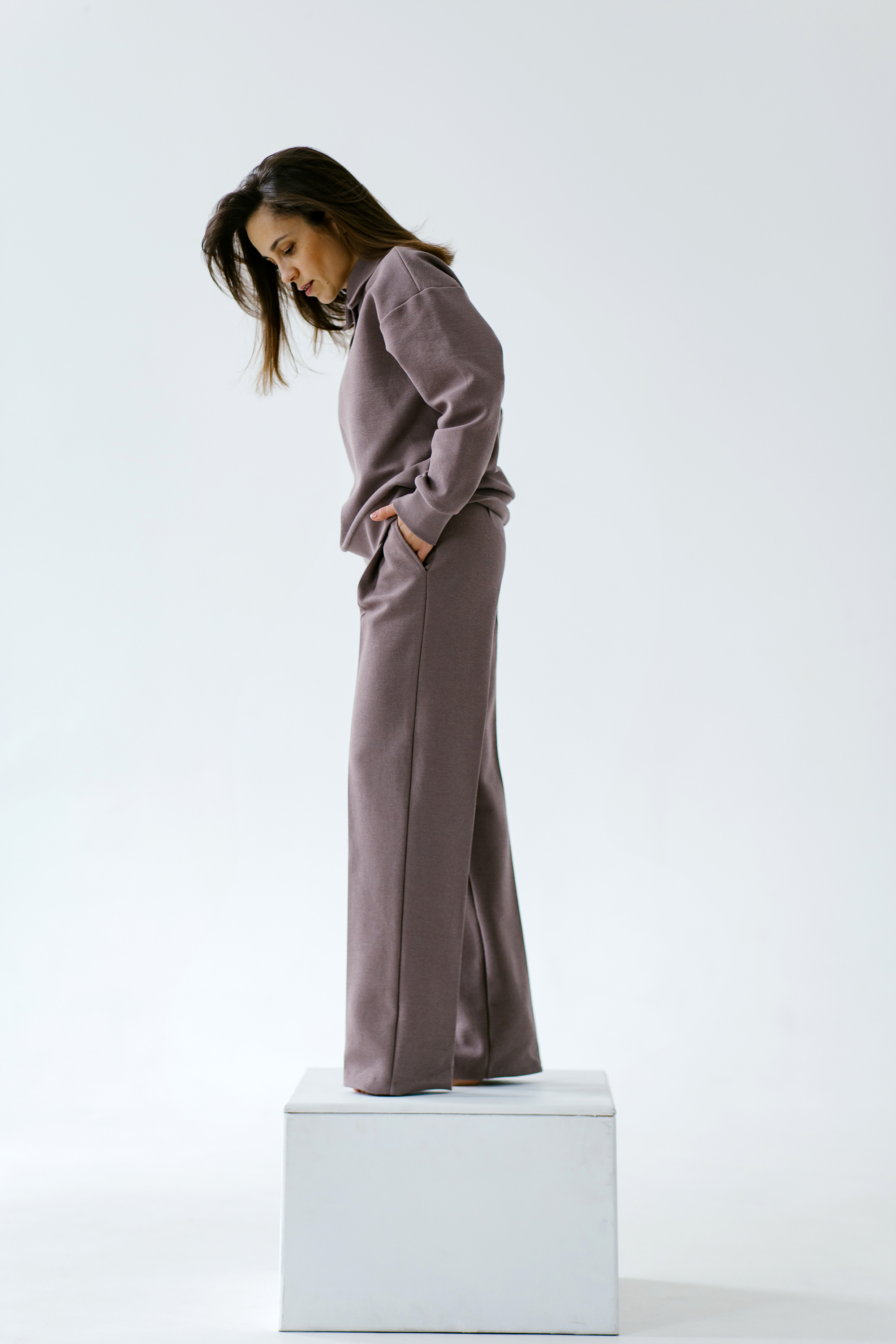 Брюки сшиты из фактурного дабла 93% – хлопок, 6% – полиэстер, 1% – эластан; плотность – 320гр/м2; ширина 160см.