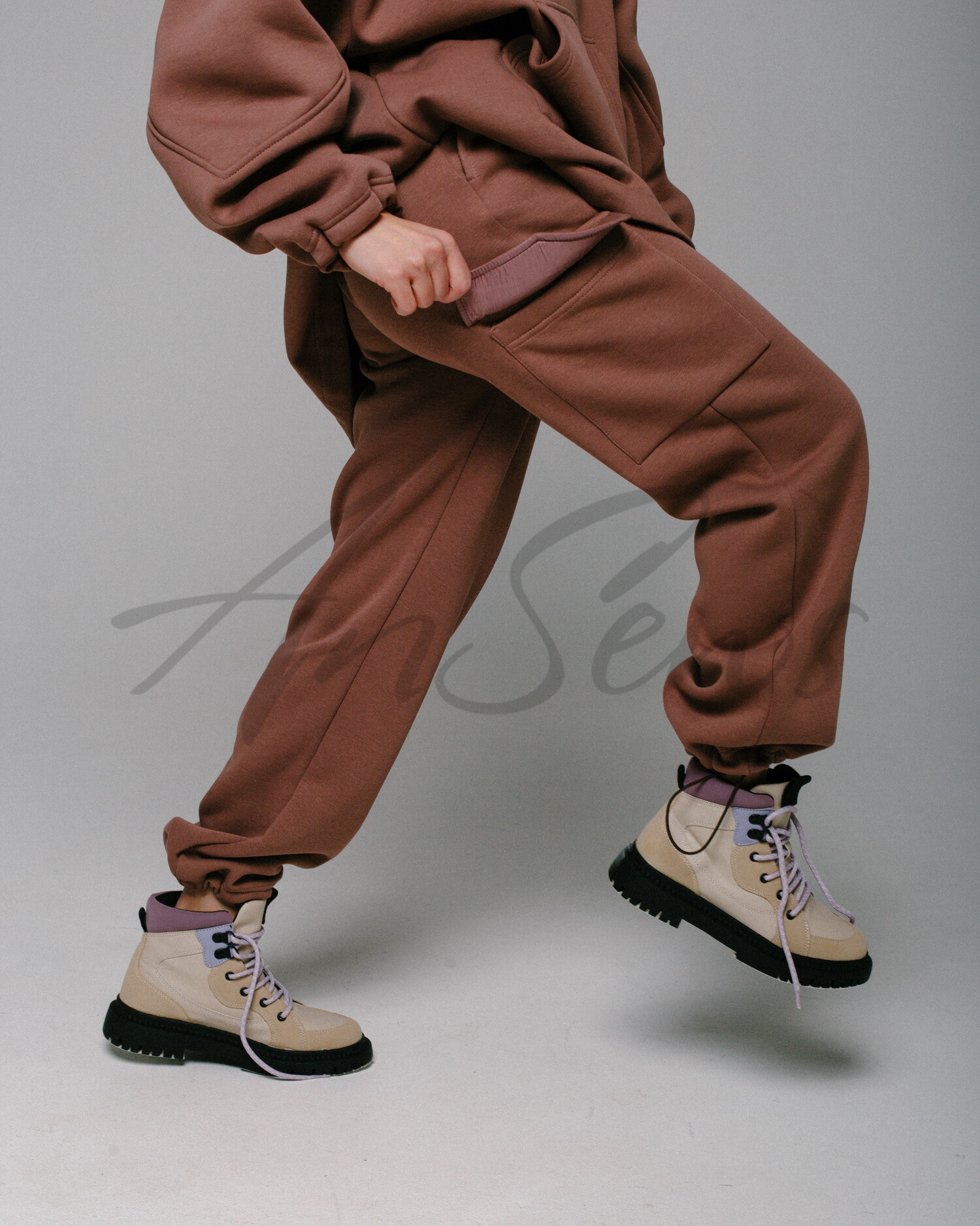 Брюки из трикотажного полотна футер с начесом. Брюки прямого кроя, с