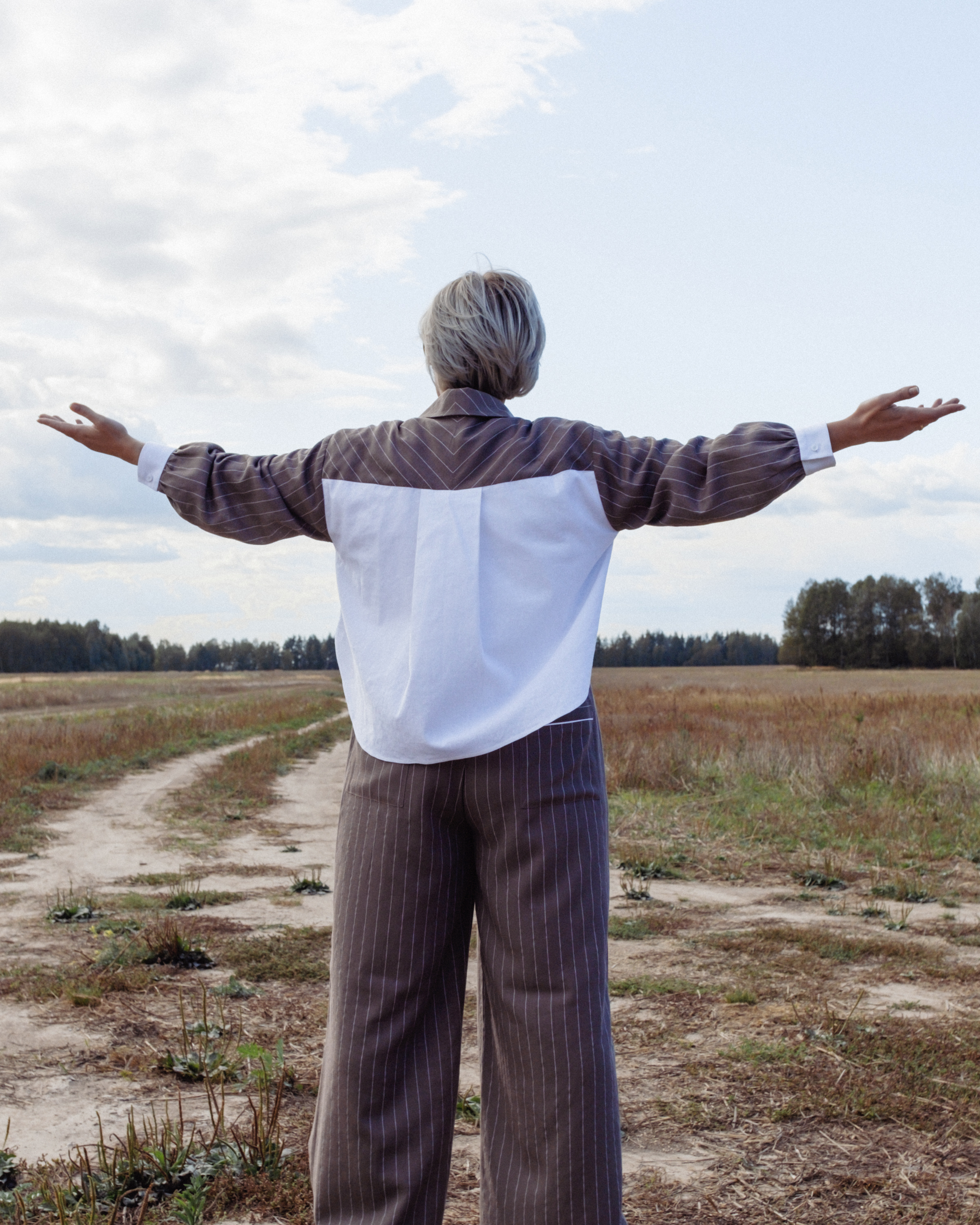 - Изделие на фото сшито ткани шириной 150 см, состав 50% лен, 50% вискоза.
