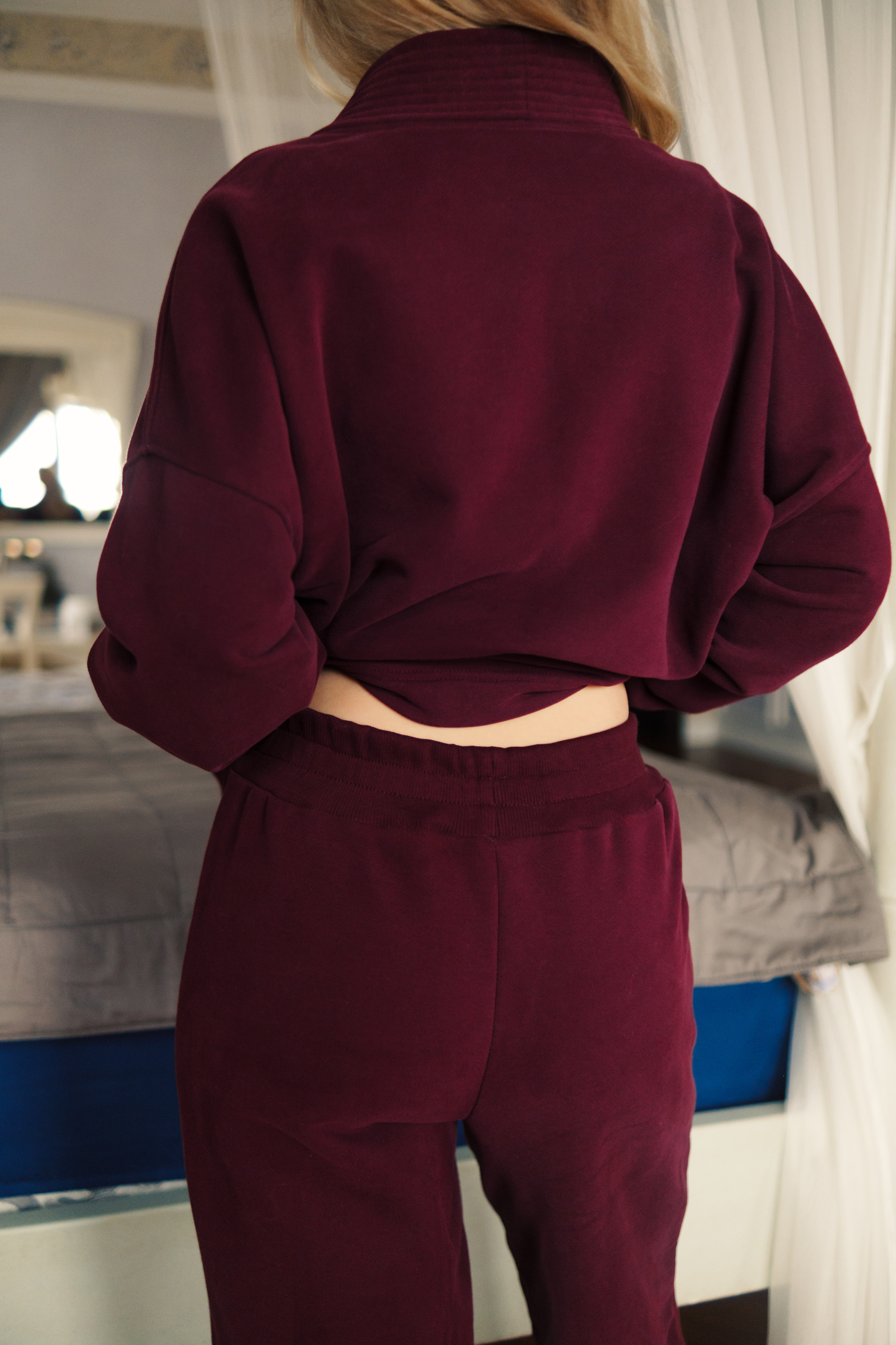 - Изделие на фото сшито трикотажного полотна футер 3-хнитка с эффектом велюра. Состав 90% хлопок, 10 % полиэстер. Ширина 195 см. Плотность 330гр/м. Качество «компакт пенье».