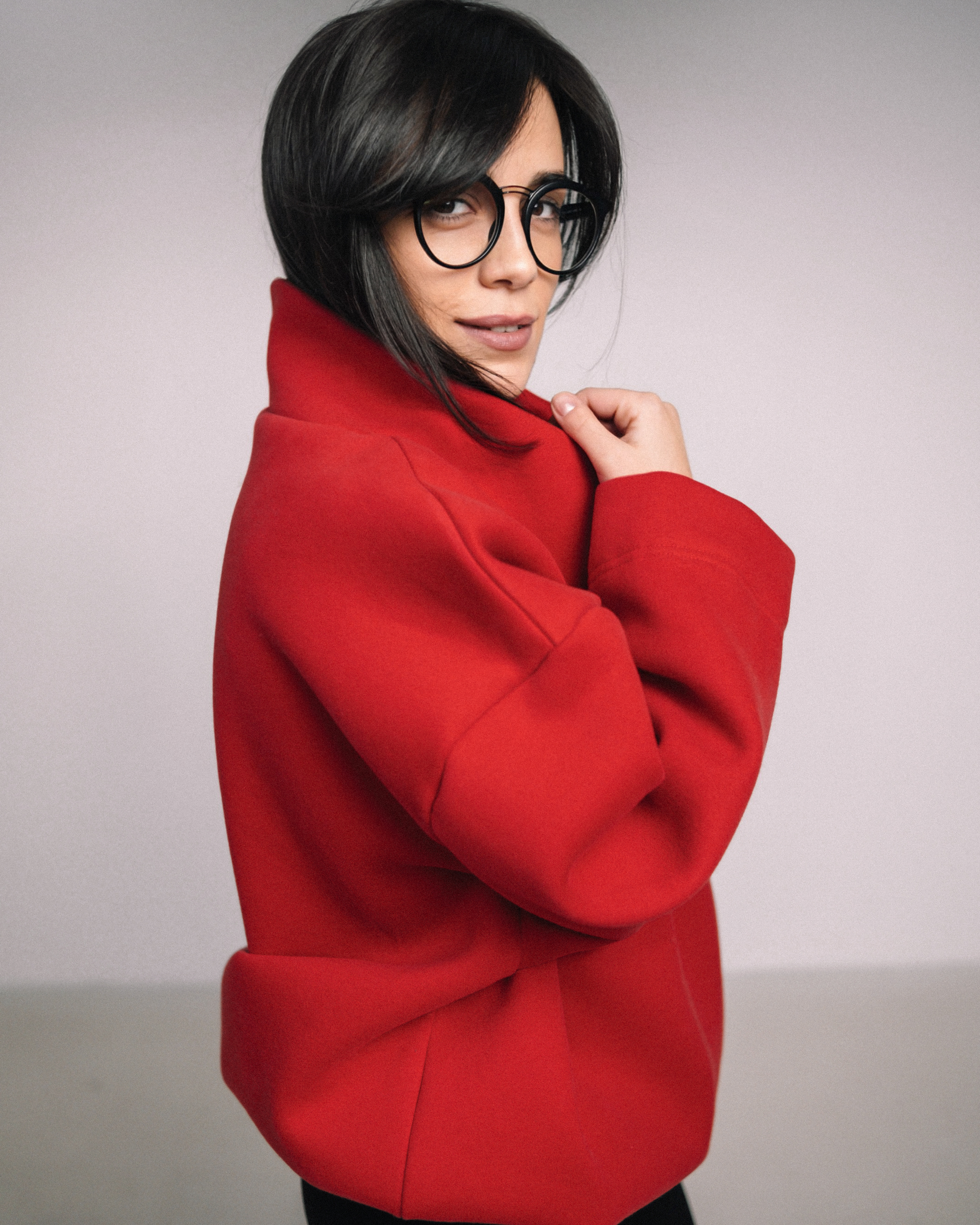 - Изделие на фото сшито трикотажного полотна футер 3-хнитка с эффектом велюра, стриженый начес, 65% хлопок, 35% полиэстер. Ширина 185 см, плотность 330 гр/м2. Качество «компакт пенье».
