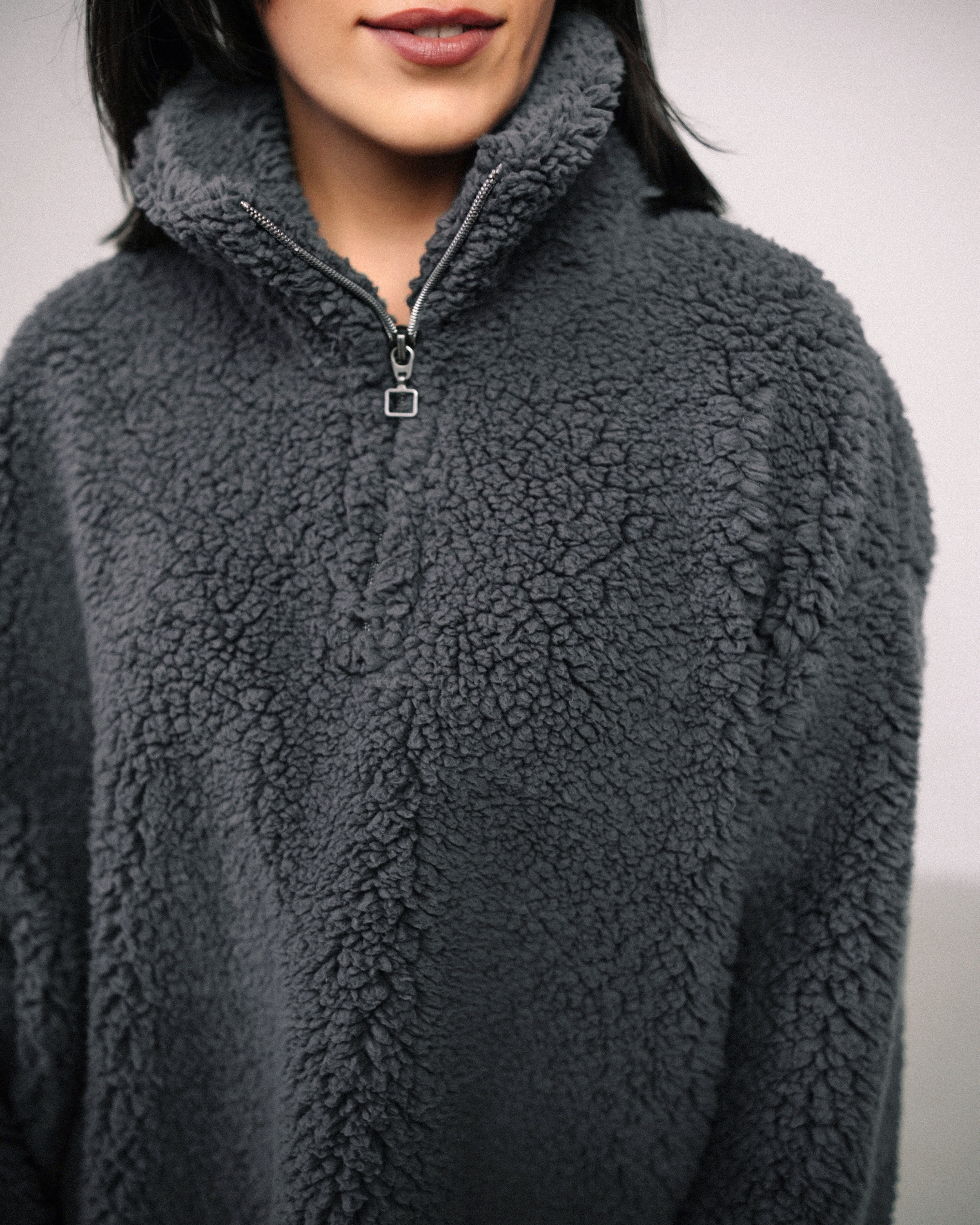 - Худи серого цвета сшито из искусственного меха плюш Тедди, состав 100% полиэстер, ширина 185 см, плотность 330гр/м2.