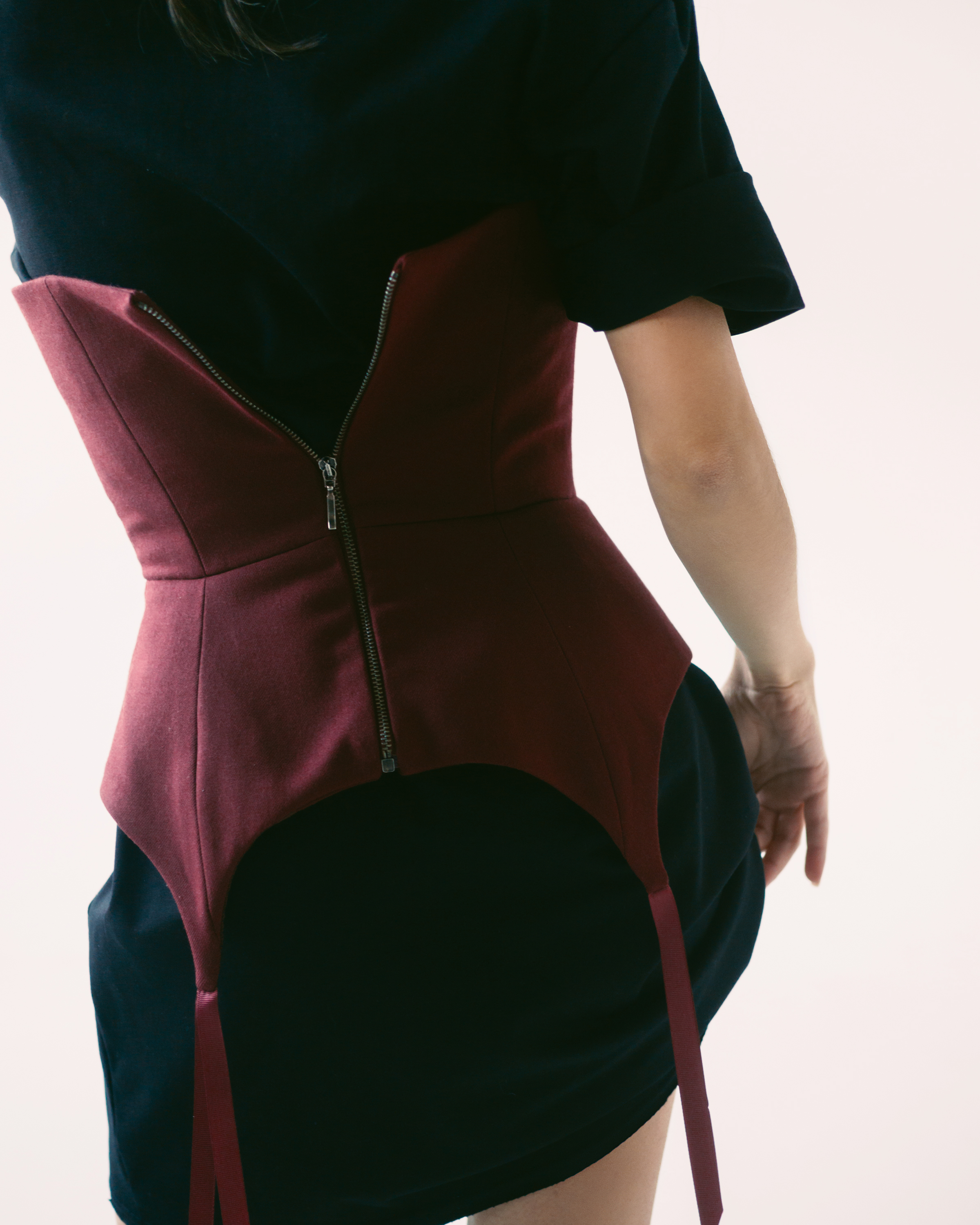 Корсаж под грудь, с отрезной линией талии и баской. Корсаж выполнен