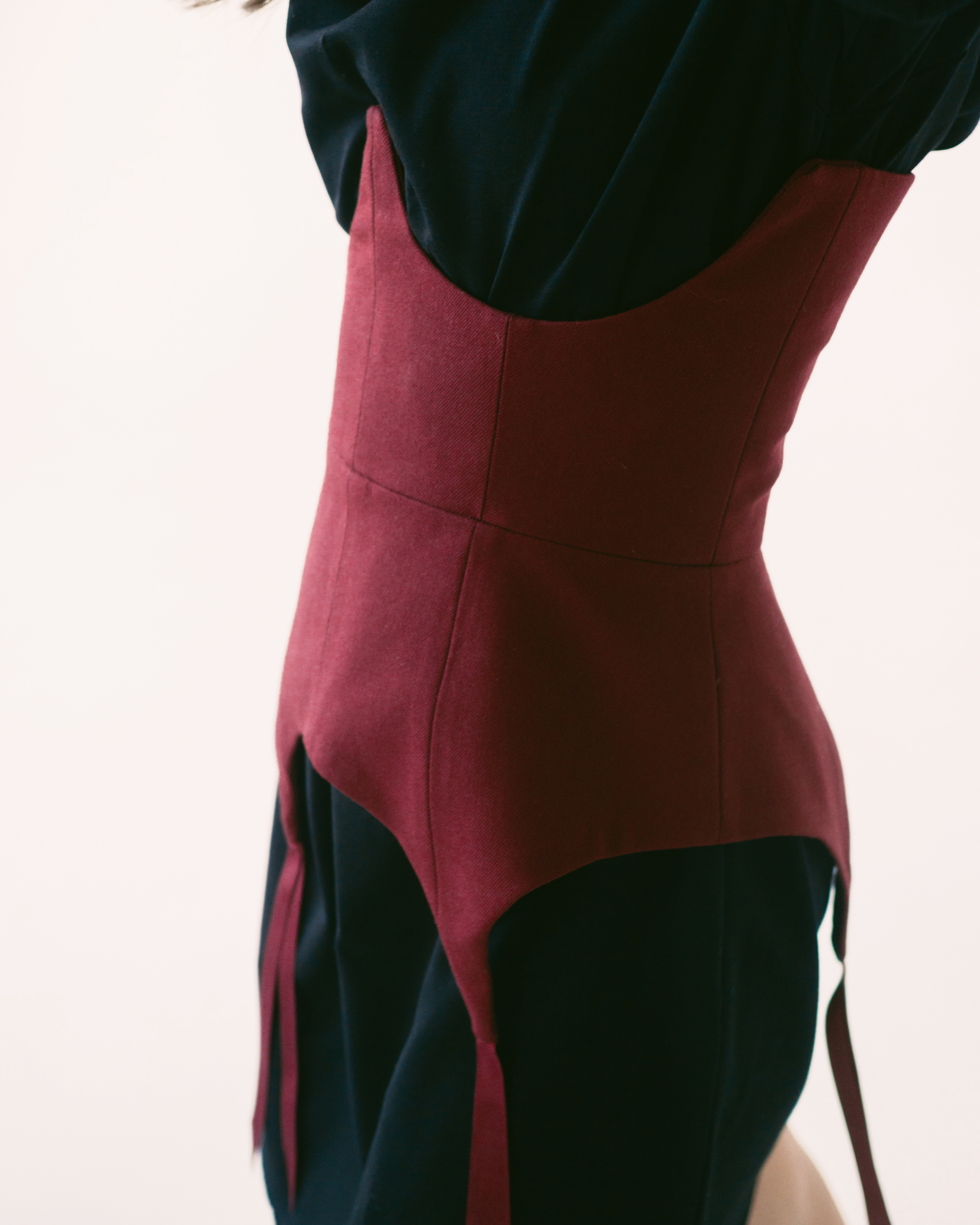 рельефными швами, имеет фигурную линию низа, имитирующую подвязки с