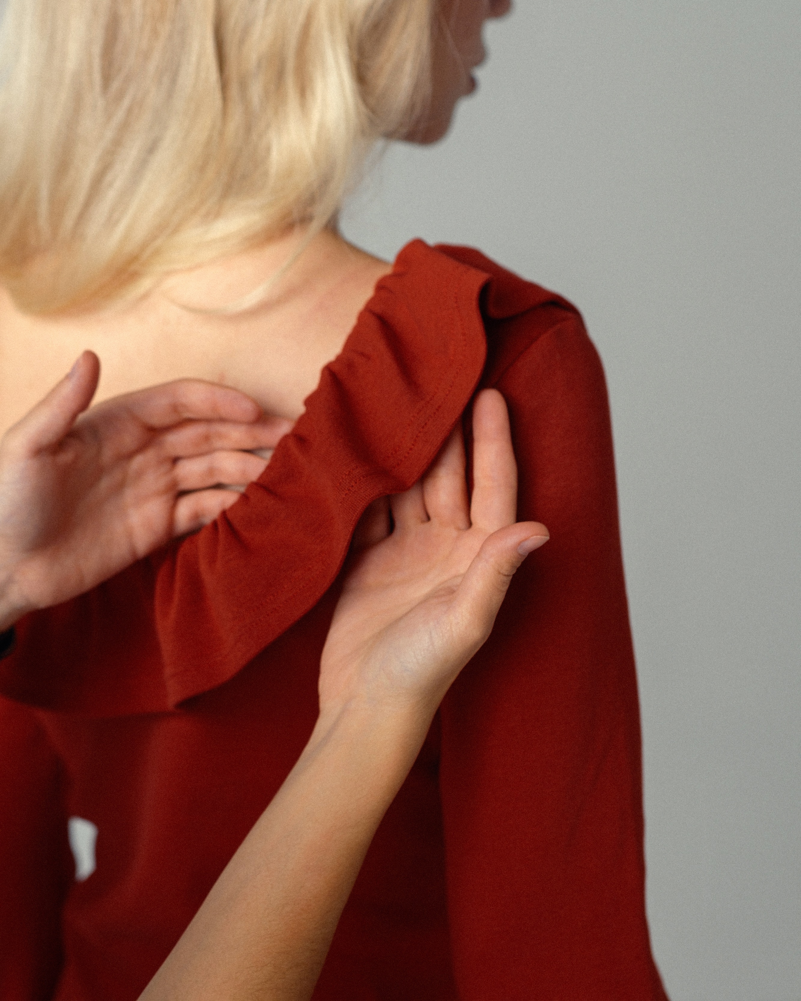 Прибавок к обхвату груди и обхвату бедер нет. Модель шьется только из трикотажных полотен с коэффициентом растяжимости не более 0,95 см (например, 0,95, 0,9, 0,85, 0,8 и т.д.).