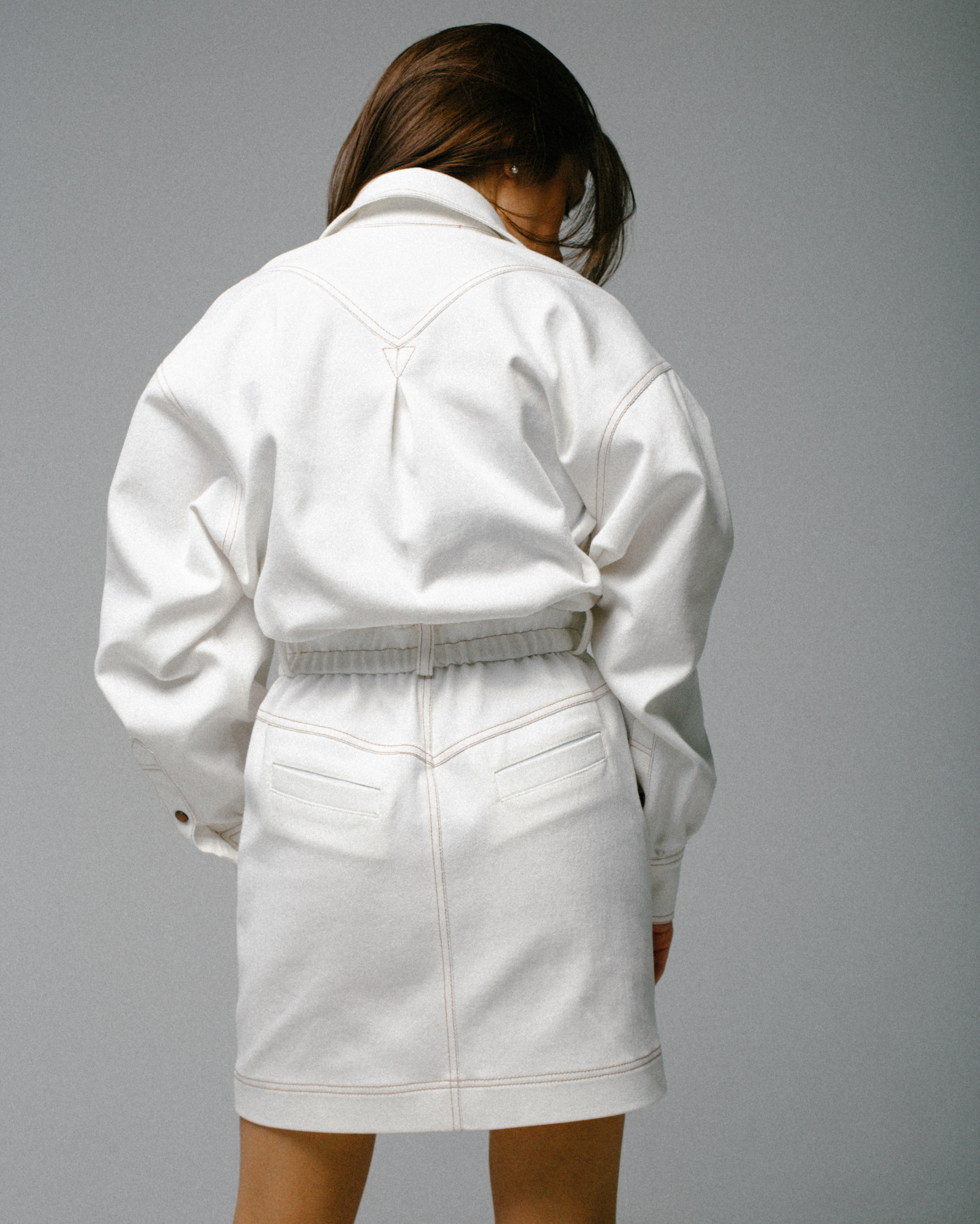 Швы платья отстрочены двойной джинсовой строчкой.