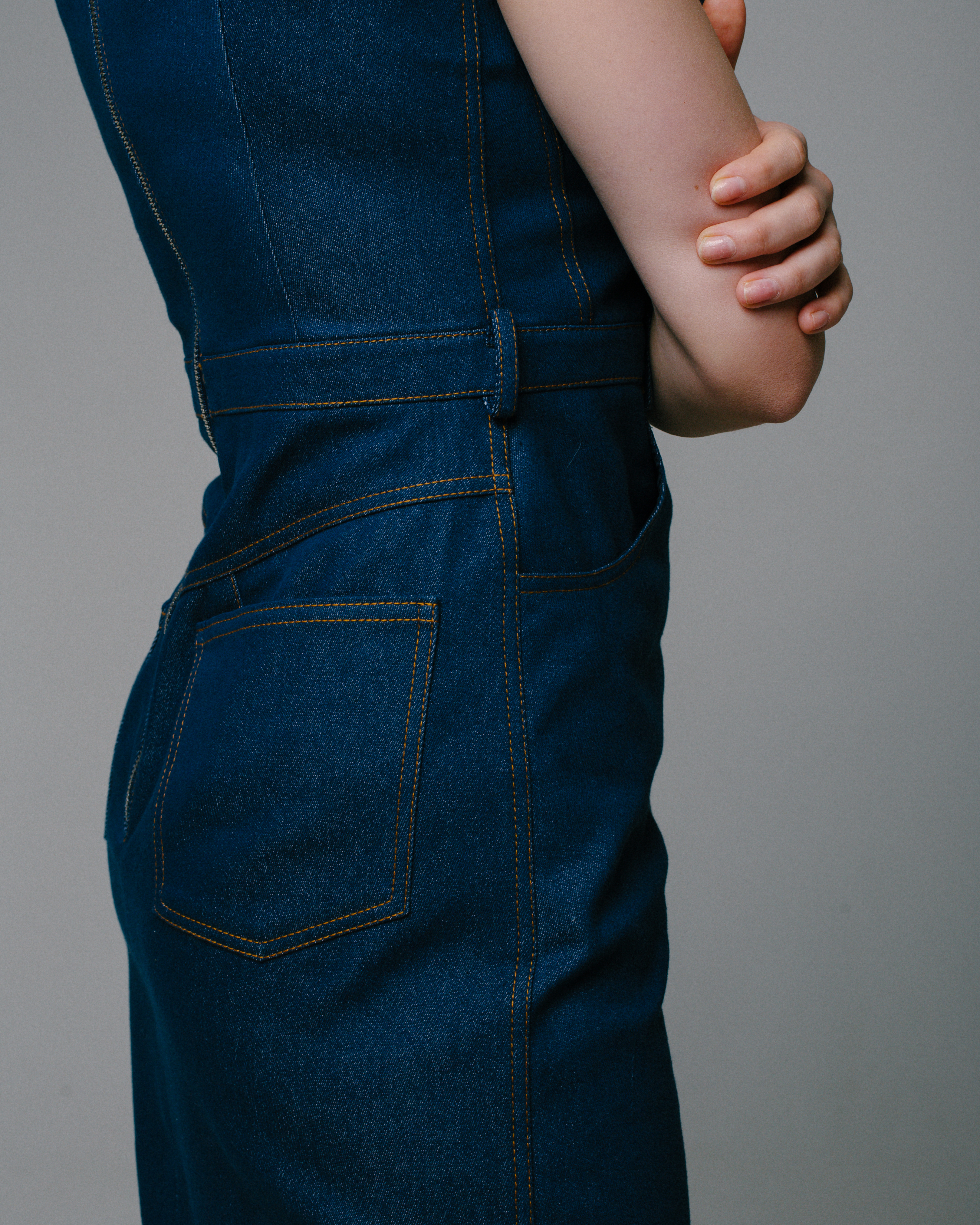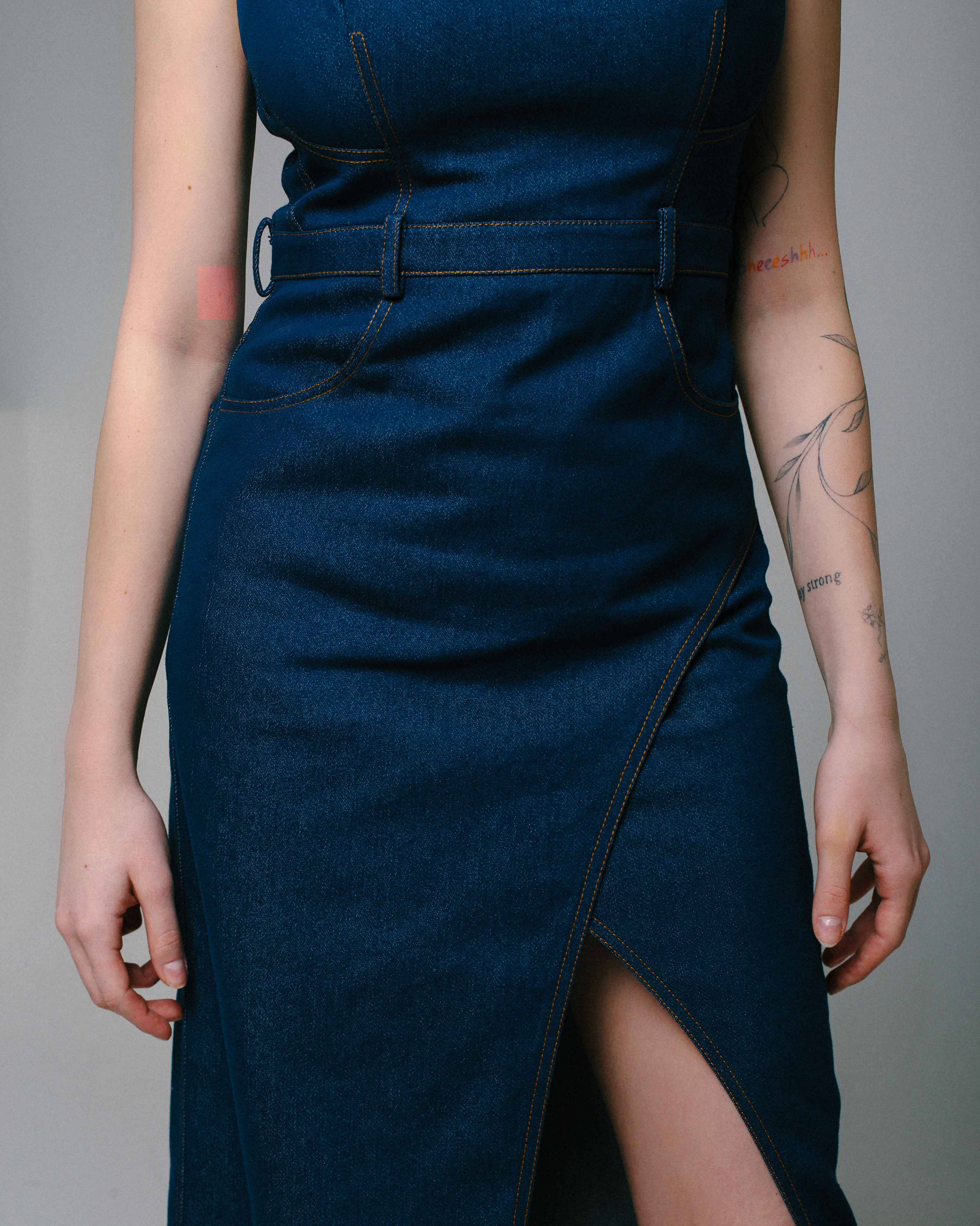 Облегающее платье из джинсовой ткани, отрезное по линии талии. Лиф