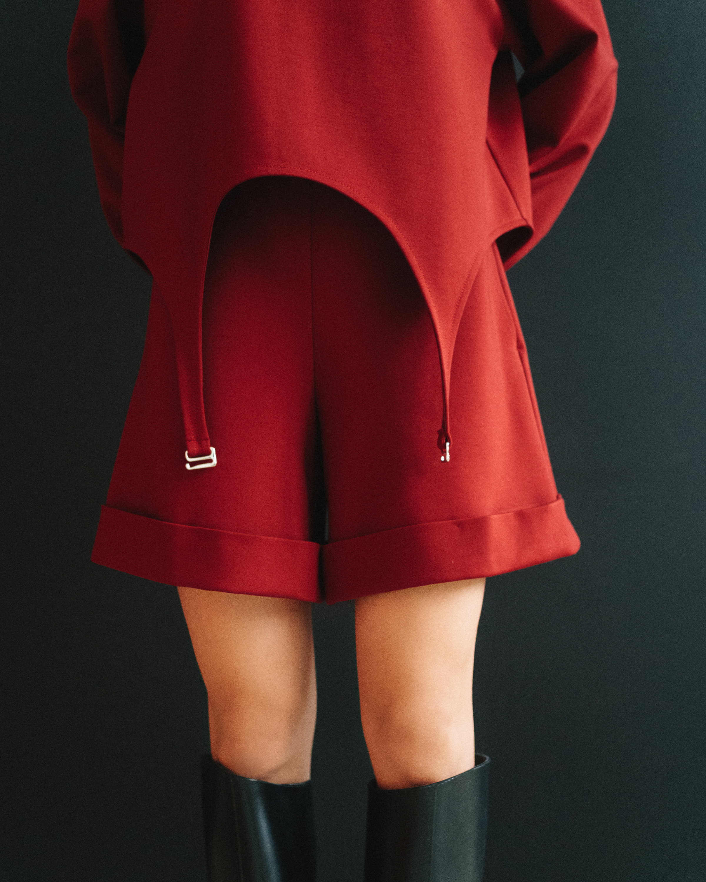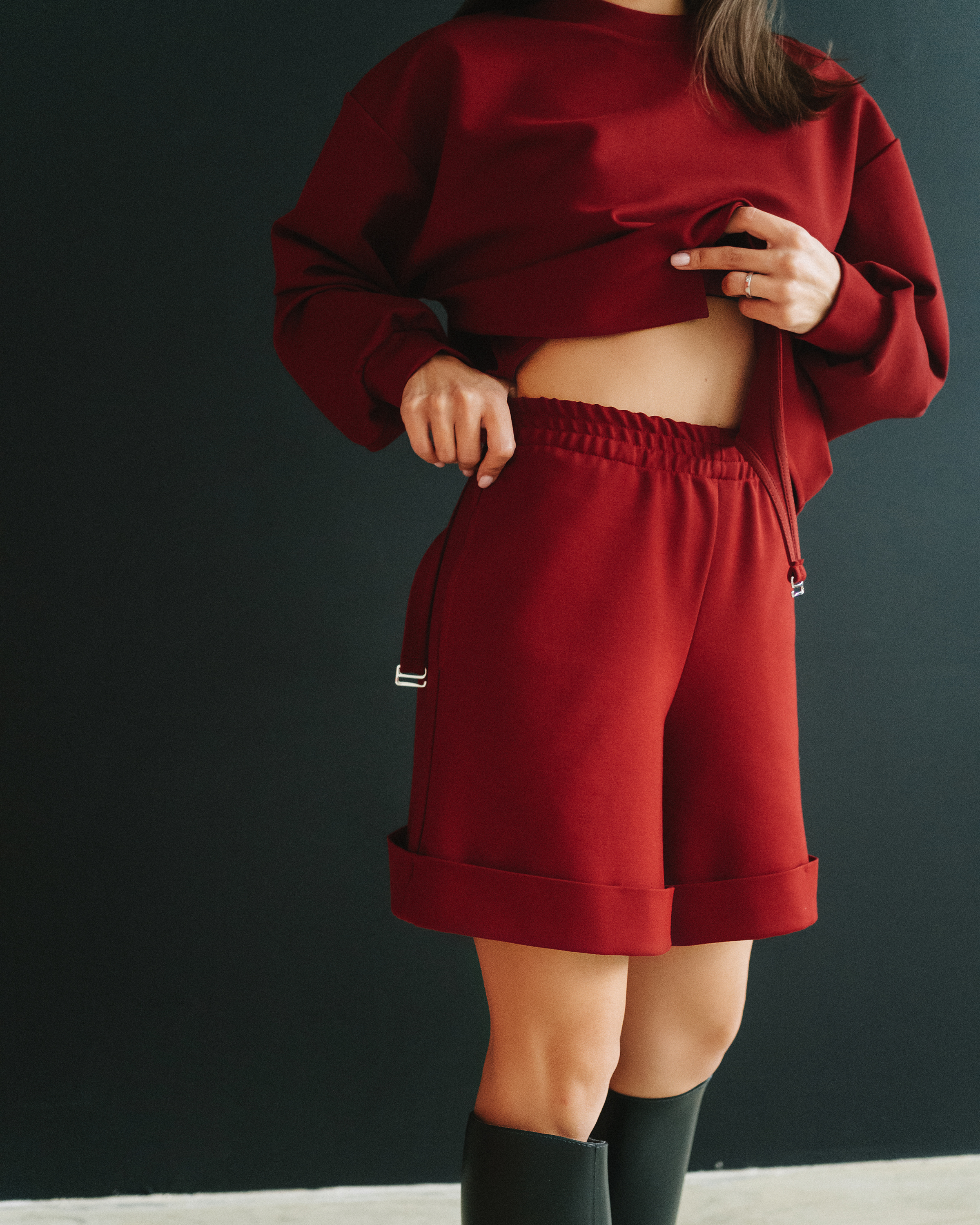 отстрочкой, на резинке. По низу шорт – широкие отвороты.