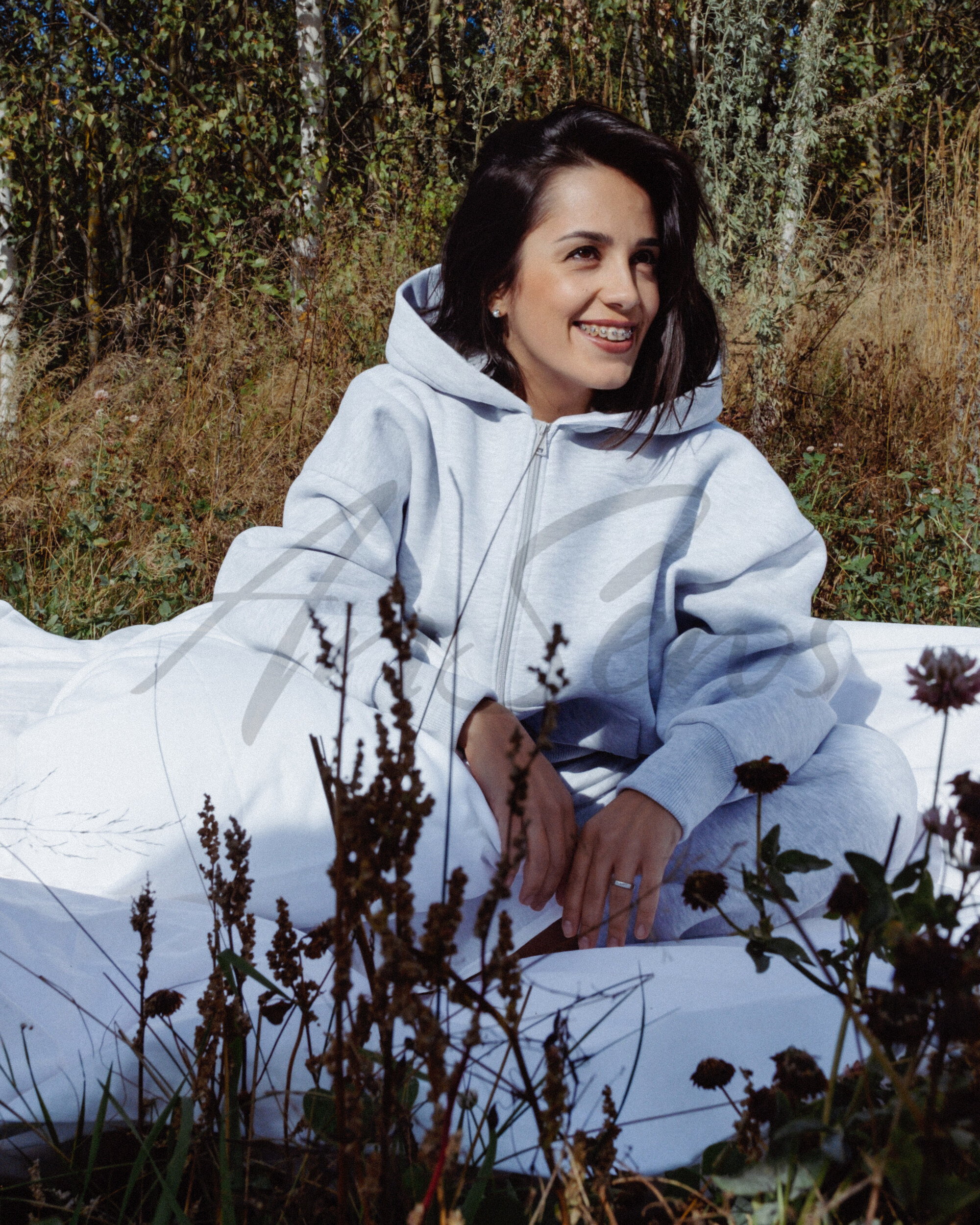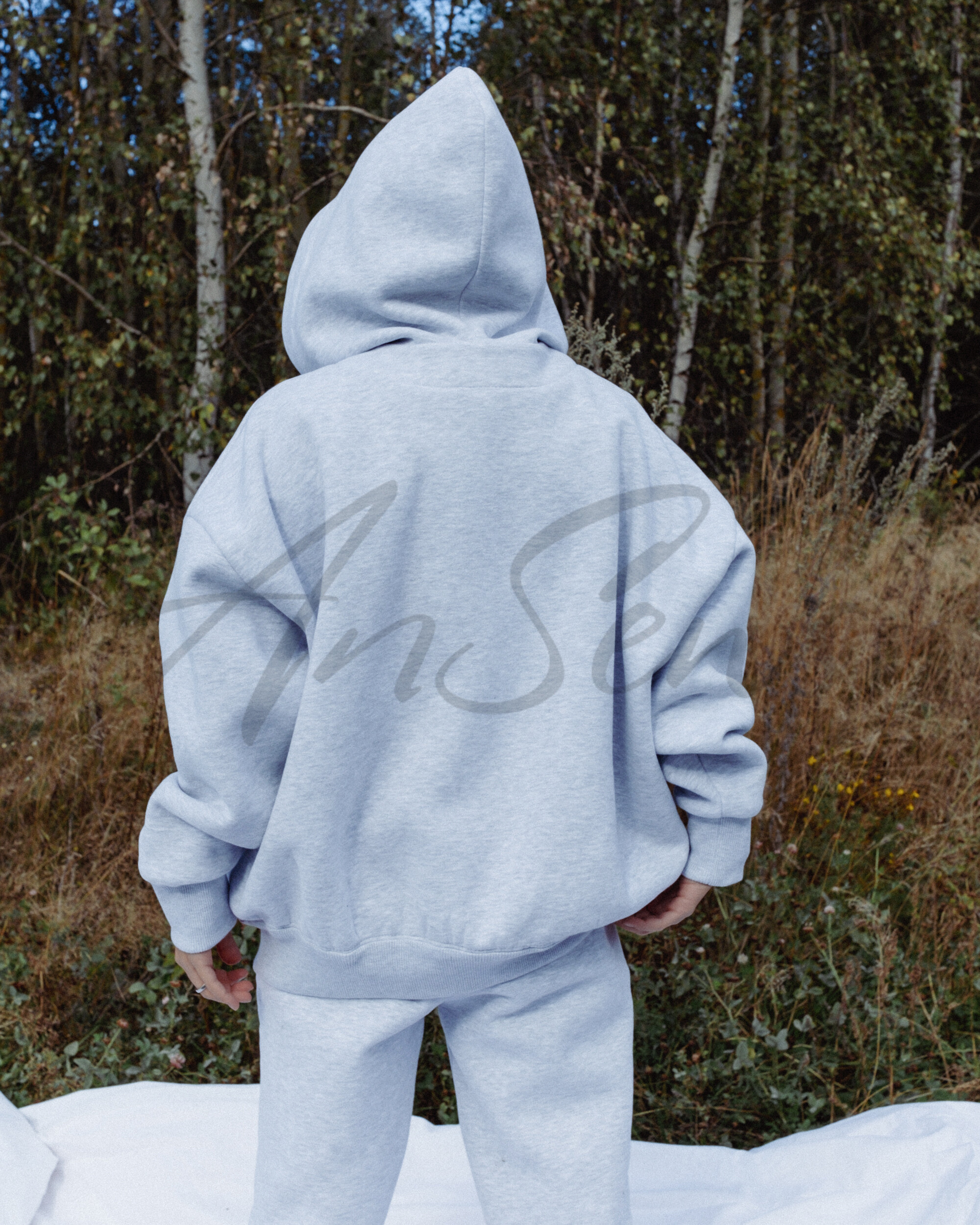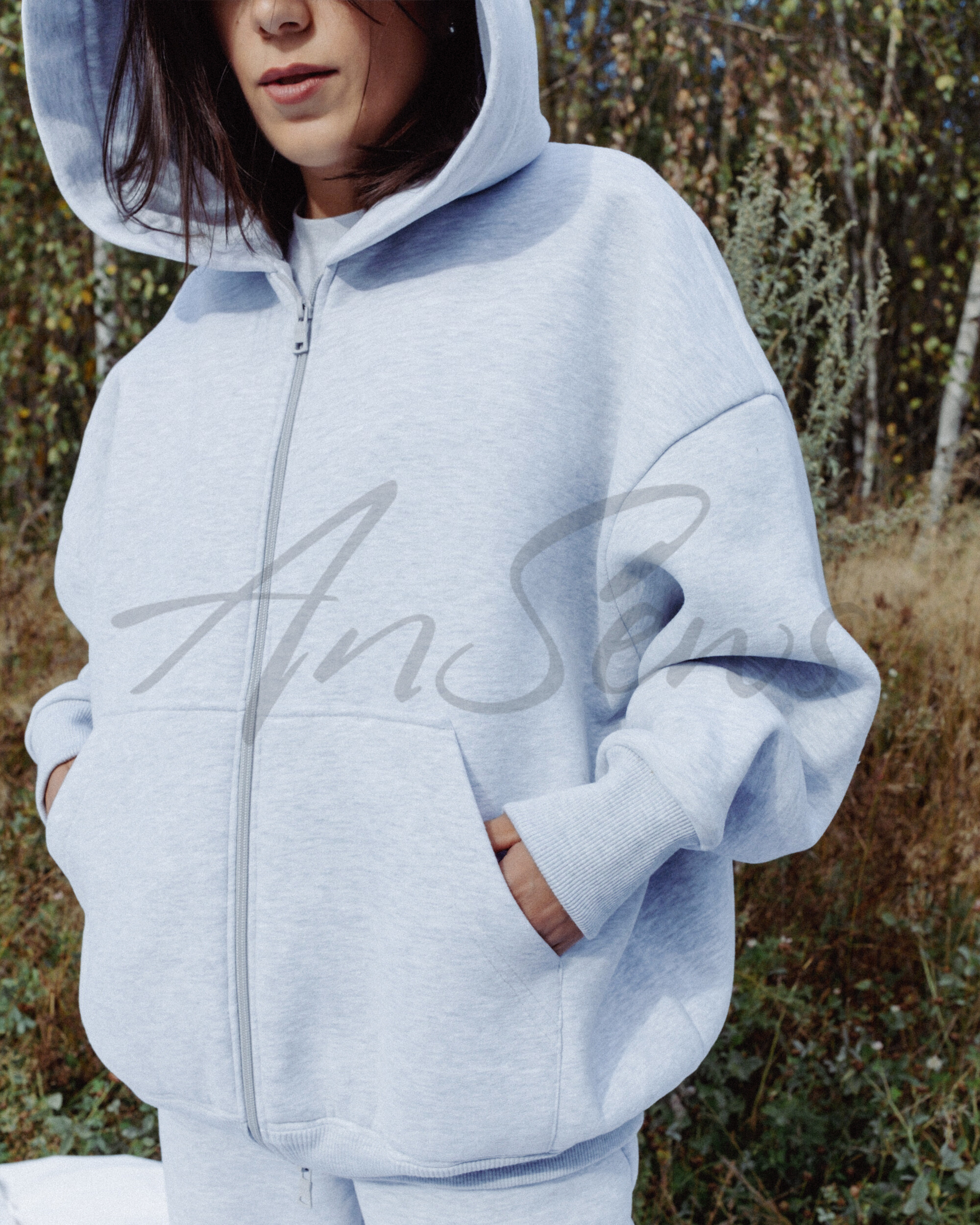 Толстовка большого объема из футера с начесом, застегивается на молнию, обработанную подбортом. Спереди выполнены накладные карманы с наклонным входом. Рукав рубашечный, плечо спущено. Низы рукавов обработаны притачными манжетами из кашкорсе. Низ толстовки обработан притачным поясом из кашкорсе. Капюшон притачной, одношовный, на подкладке из кулирной глади.