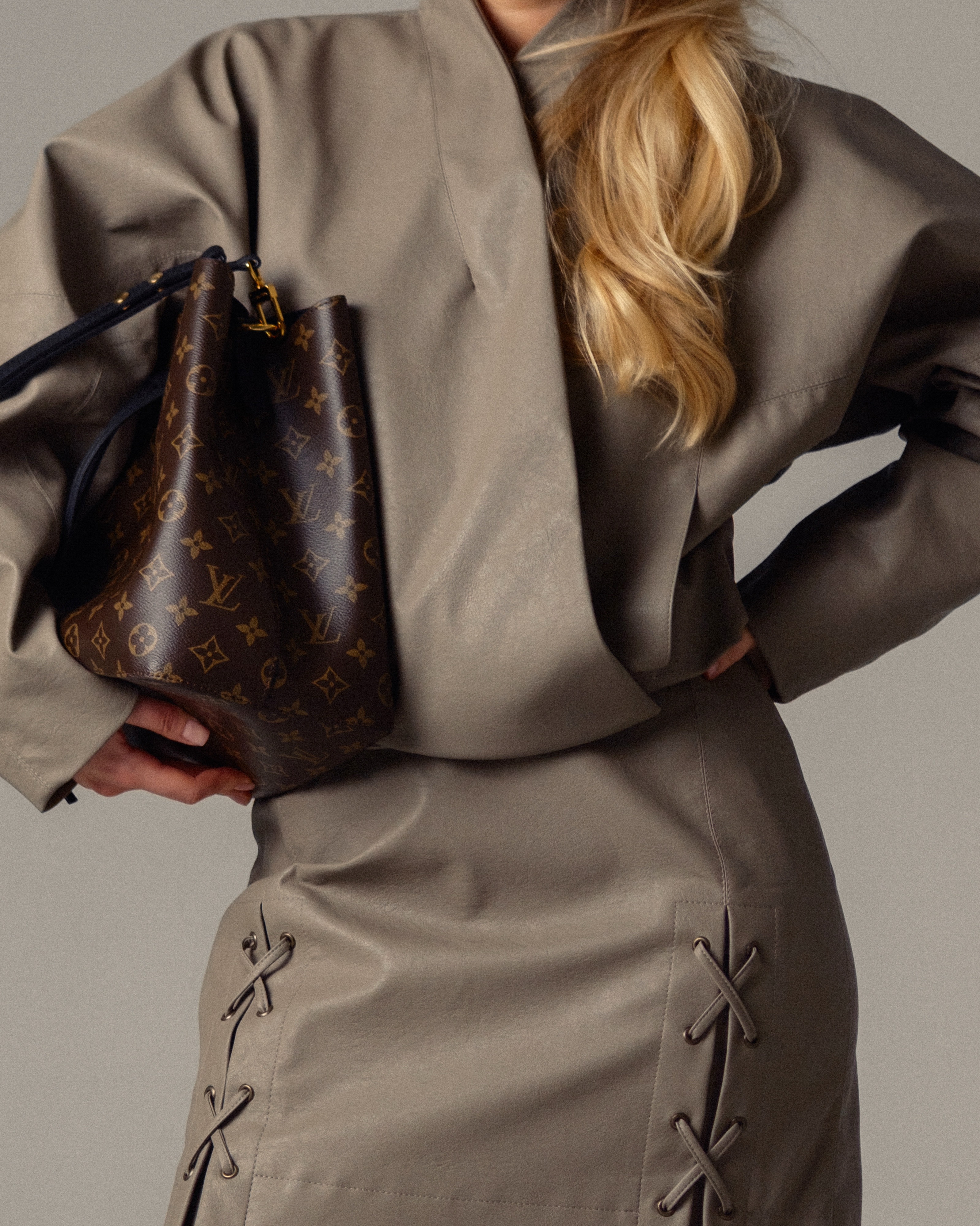 - Изделие на фото сшито из искусственной кожи, состав 60% полиуретановое покрытие, 40% полиэстер, ширина 140 см, плотность 340 гр/м2.