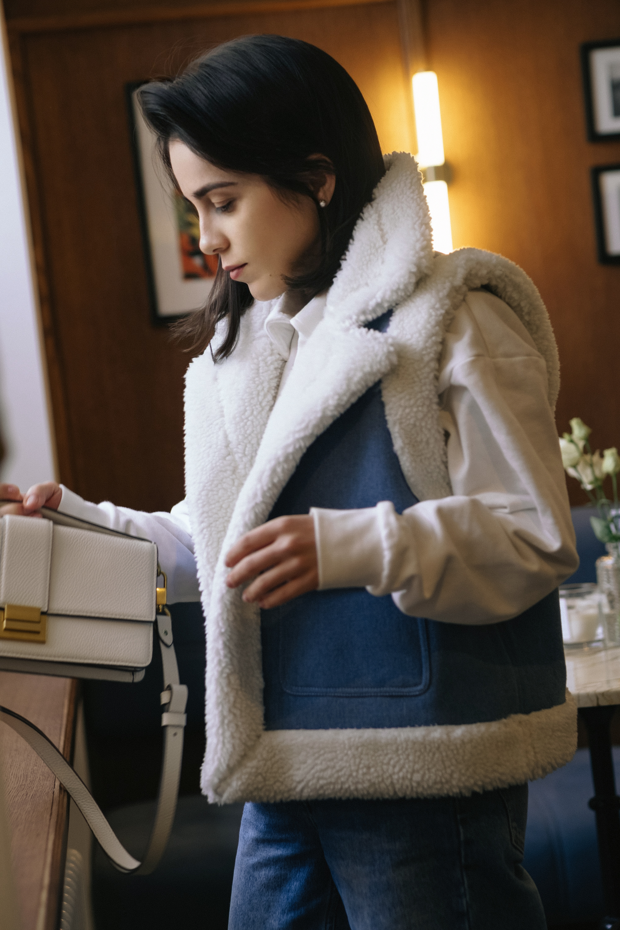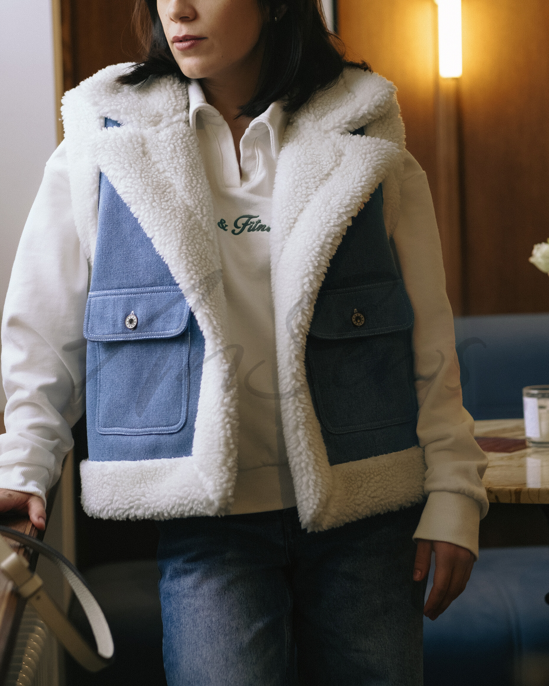 - Изделие на фото сшито из искусственной дубленки шириной 145 см, высота ворса 8-10 мм, толщина 10-11 мм, плотность 850 гр/мп, состав: ворс PE 100%, основа COTTON 100%.